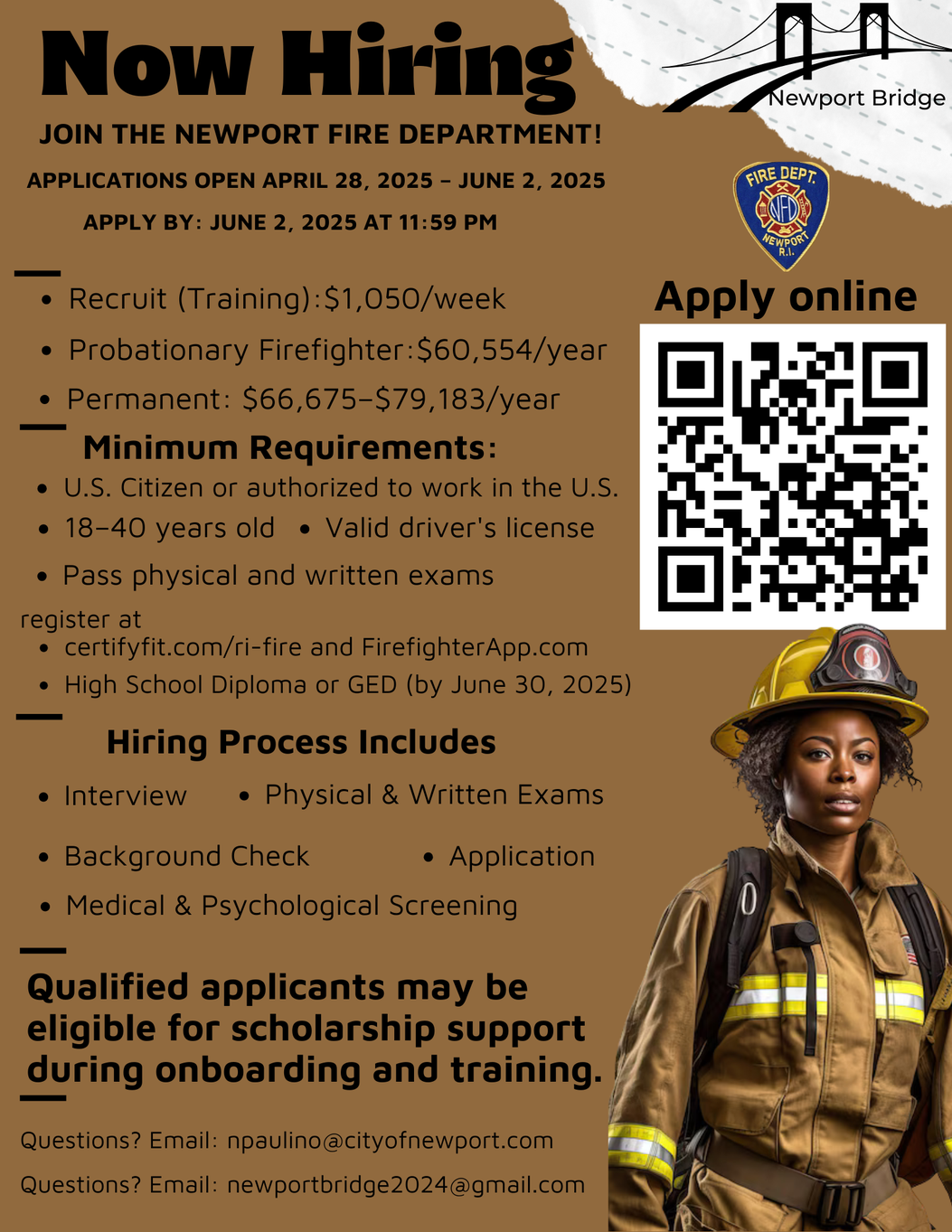 Spread the word and bring a friend. Let’s light the spark! #NewportFireTeam #FirefighterRecruitment #CommunityStrong #NextGenHeroes